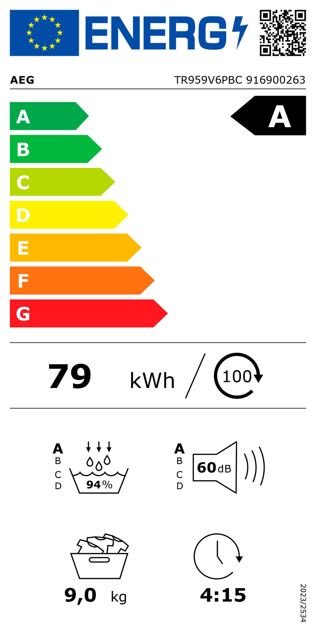 AEG SECADOR ROUPA 9KG BOMBA DE CALOR (A) TR959V6PBC