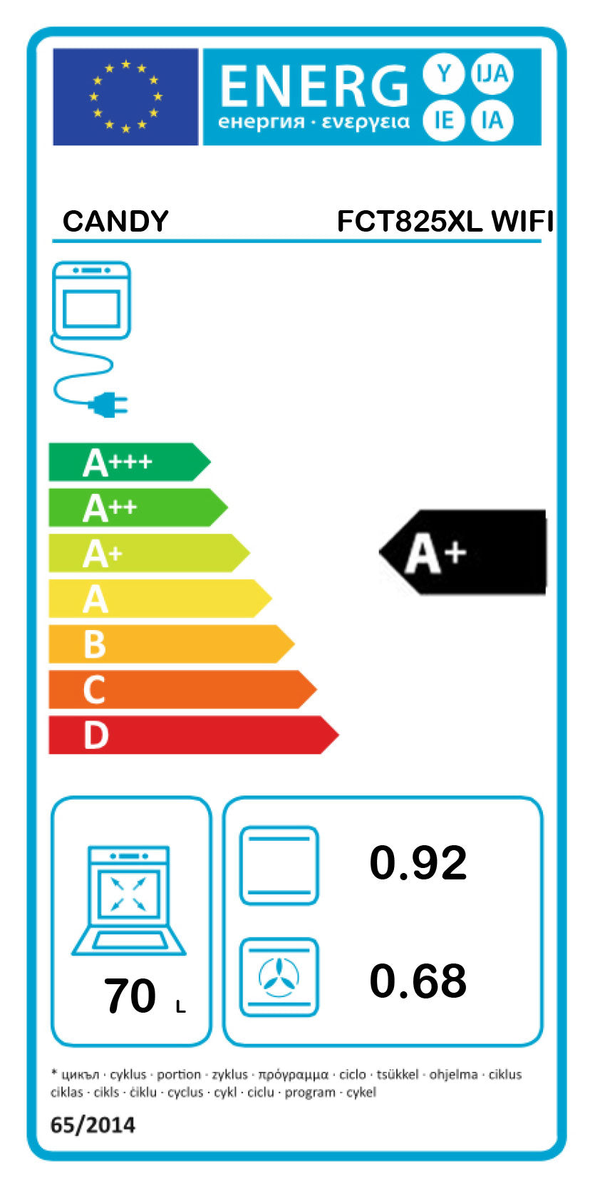 CANDY FORNO MULTIF 10PROG 70LT INOX A+ FCT825XL