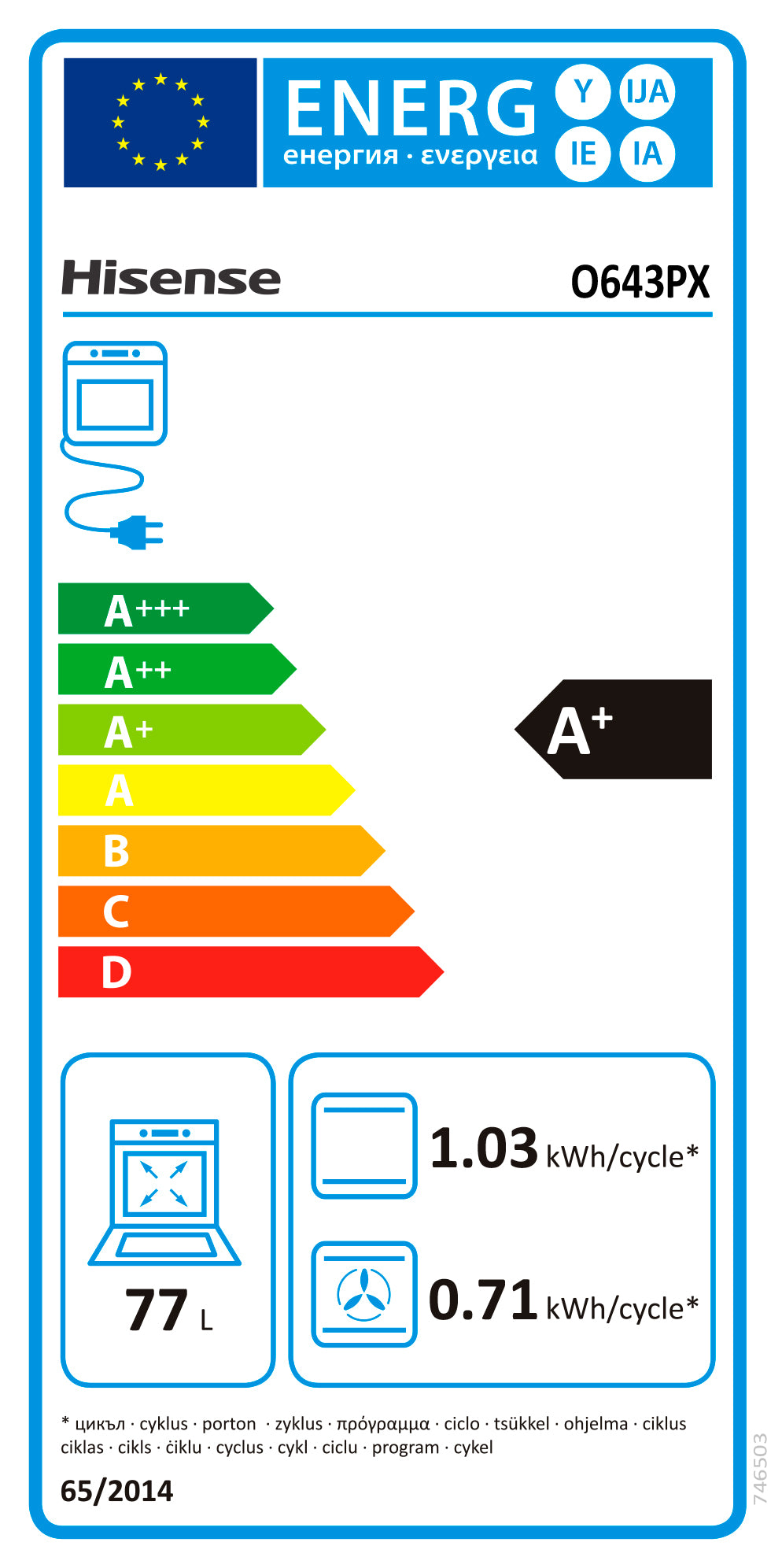 HISENSE FORNO MULTIF PIROLITICO 77LT INOX A+ O643PX