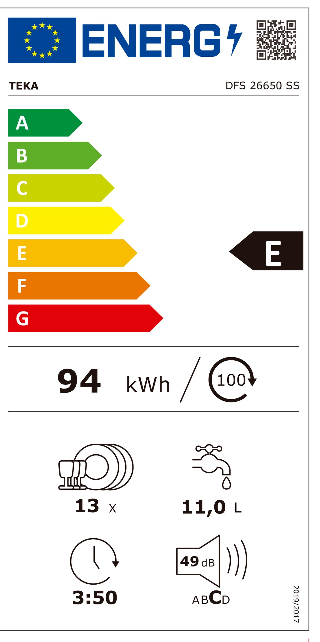TEKA MAQUINA LOUÇA 6PROG 5TEMP 13TALHERES INOX (E) DFS26650INOX